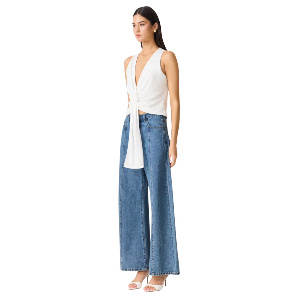El Ines Top es una pieza sofisticada y moderna que eleva cualquier look con un diseño llamativo y femenino. Presenta escote profundo en V y silueta sin mangas que estiliza la parte superior, mientras el detalle central con argolla metálica y caída frontal tipo lazo aporta movimiento y un toque contemporáneo. Su estructura limpia realza la figura y lo convierte en el equilibrio perfecto entre sensualidad y elegancia.