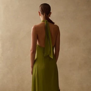 El vestido Savannah presenta una silueta minimalista de corte lencero. Con paneles en contraste y un elegante escote halter, esta sofisticada prenda de silueta fluida es perfecta para quienes buscan un vestido de corte relajado que les permita sentirse cómodas y a la vez elegantes.