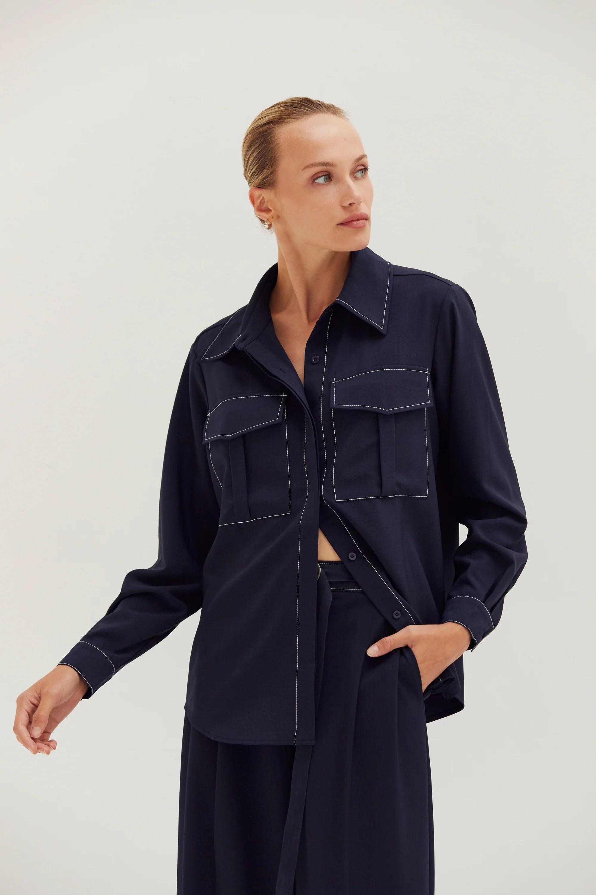 Kaia Contrast Stitch Utility Shirt