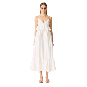 Su escote en V con tirantes finos y detalle de volantes aporta movimiento y delicadeza, mientras que su caída amplia lo convierte en la opción perfecta para días de calor o planes effortless.