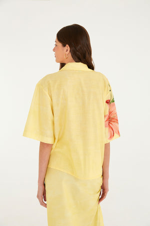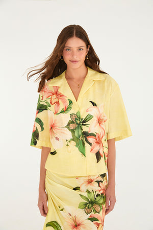 Camisa estampada Floribel con modelaje suelto, cuello clásico y abotonado frontal, perfecta para días casuales que buscan comodidad sin perder el encanto. Sus mangas cortas brindan libertad de movimiento, ideal para eventos al aire libre o un café. Una pieza esencial para iluminar tu guardarropa. FARM Rio, Colección Carioca – Invierno 26.