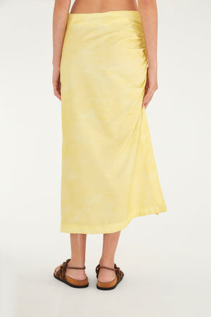 Falda Floribel. Una pieza que captura la ligereza y originalidad de la marca. Su caída larga y fluida es perfecta para crear un look casual con movimiento. Los detalles fruncidos en los laterales aportan un encanto extra, ideal para paseos al aire libre o encuentros especiales. FARM Rio, colección Carioca - invierno 26.