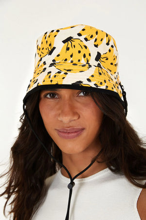 Double-sided bucket hat, Bossa Banana style, off-white. A reversible piece in cotton, with different styles on each side. Features a cord detail with a metal adjuster. Versatile and stylish, this hat will accompany you on many occasions. What you don't wear, you live. Introducing FARM Etc, the lifestyle brand of FARM Rio.