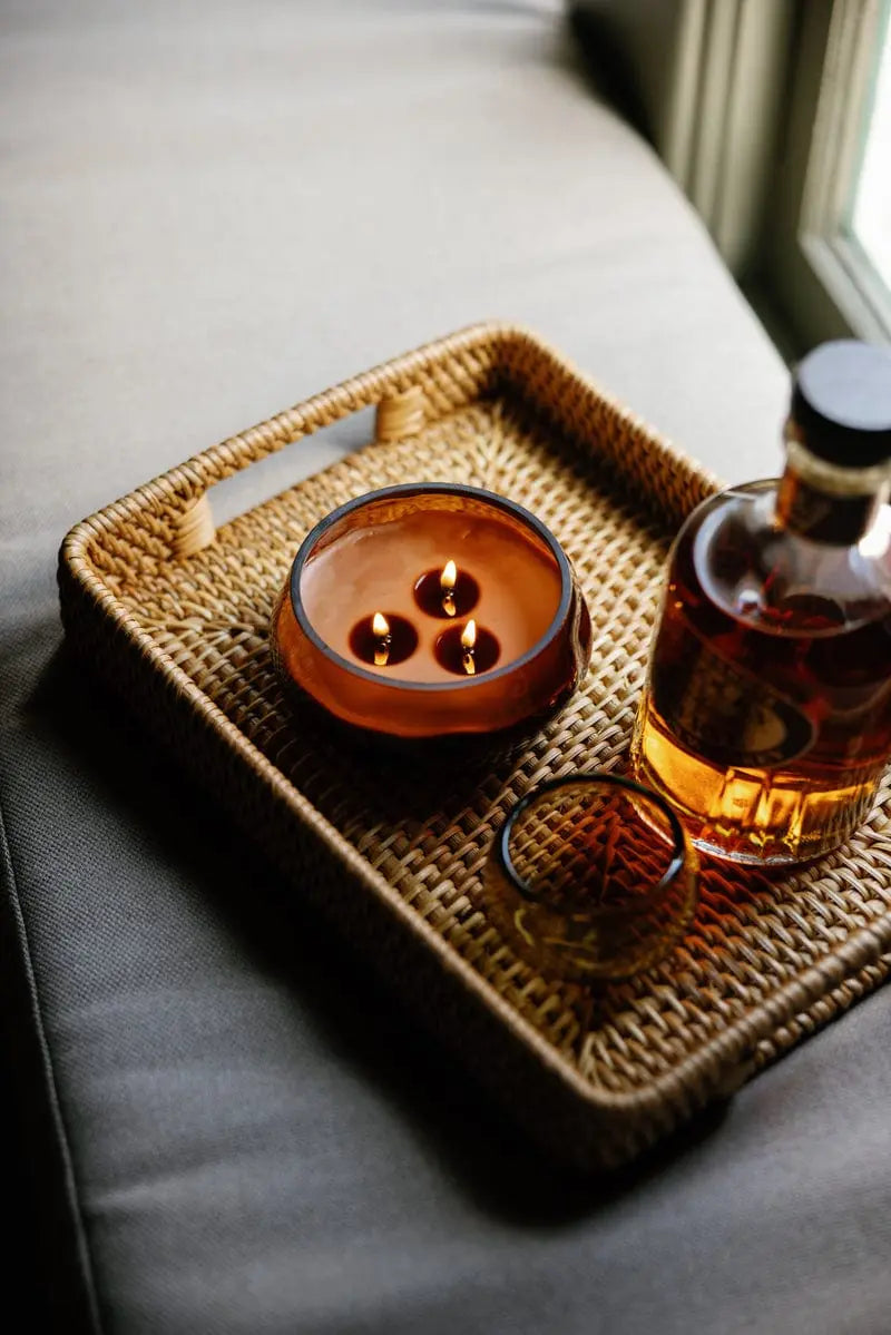 Basalt Amber 10 Oz Organic Shaped Tinted Glass with Lid