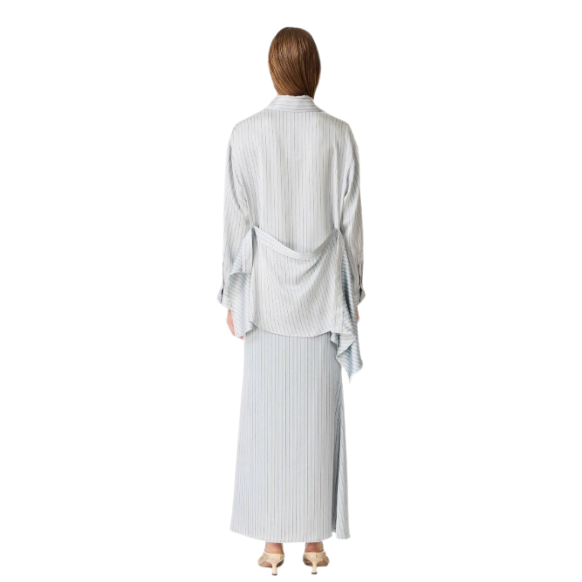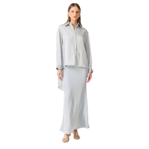 Un set que redefine lo clásico con un aire moderno y relajado. Compuesto por una camisa de corte amplio y una falda larga de silueta recta, esta propuesta de Curaae destaca por su textura sutil y su caída fluida, creando un look sofisticado sin esfuerzo.