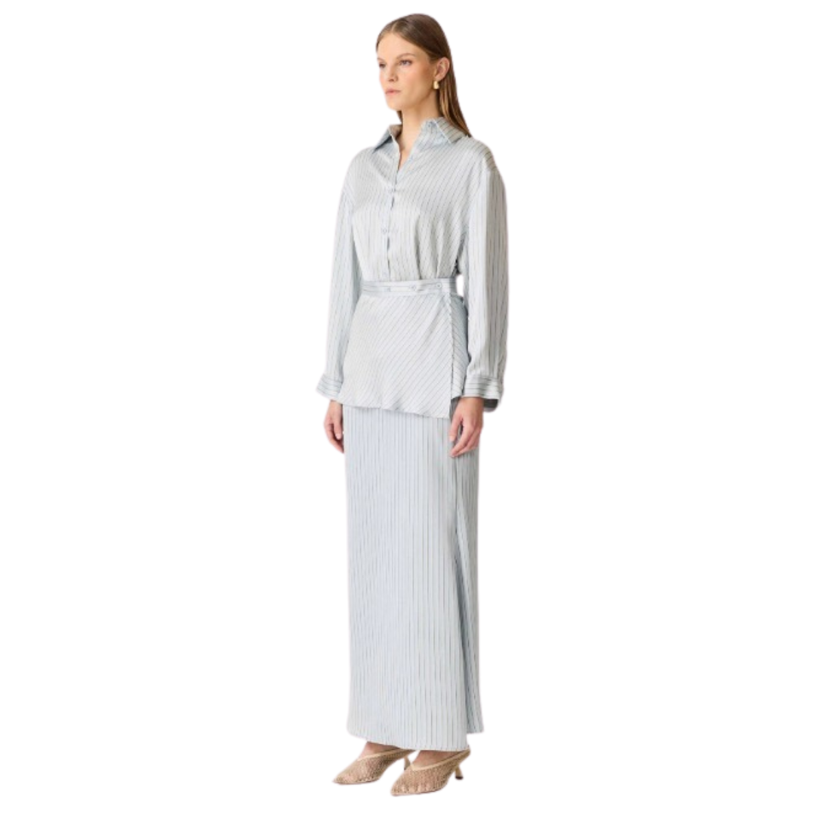 La camisa de manga larga con botones aporta estructura, mientras que la falda estiliza la figura con un fit limpio y elegante. Juntos logran un conjunto versátil que puedes llevar tanto en looks de día como en ocasiones más pulidas, o incluso usar por separado para maximizar tu clóset.