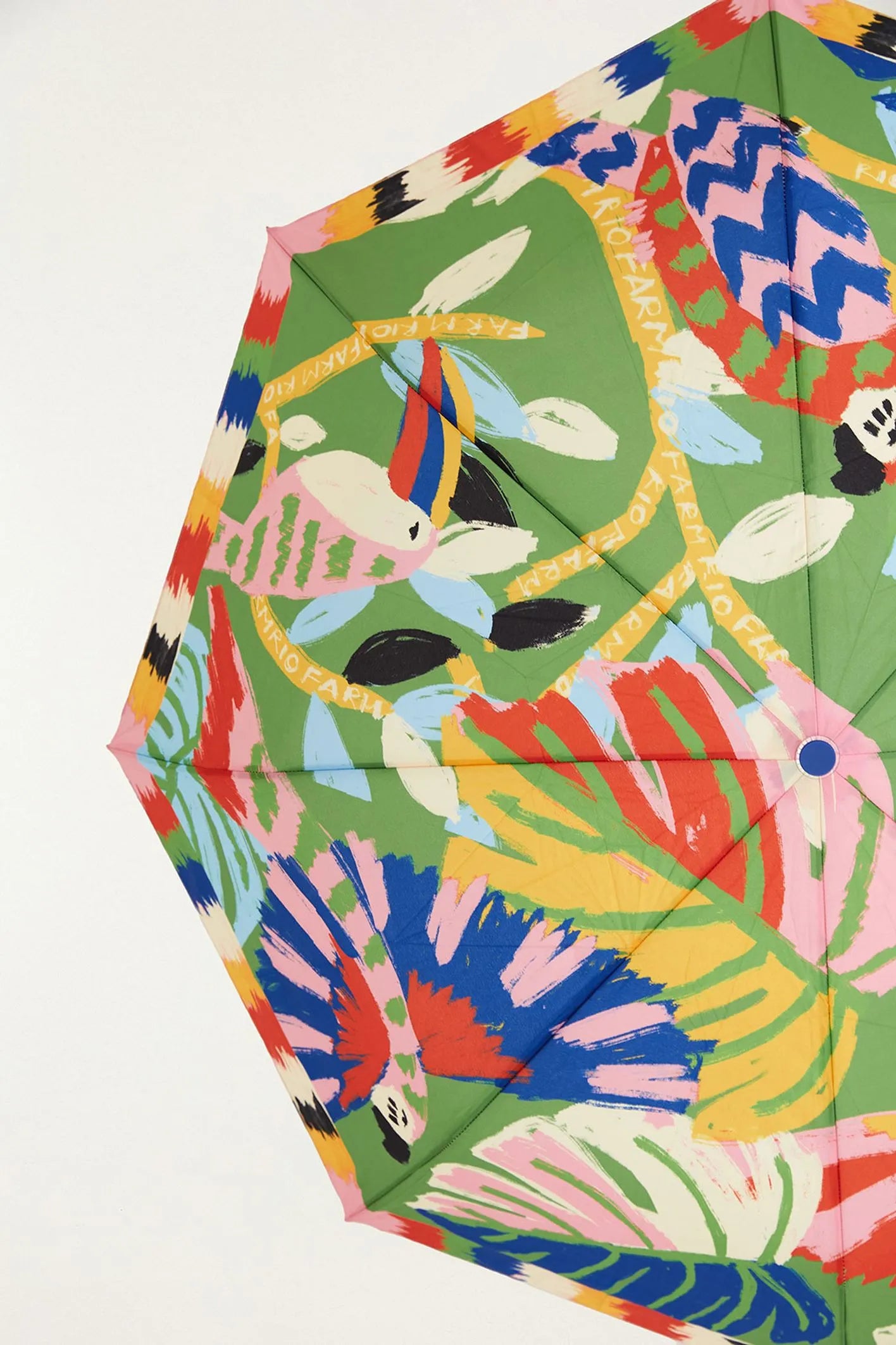 Chuá umbrella, Bosque dos Pássaros (Birds' Forest). Face the rainy days with practicality, safety, and our signature style! The Chuá umbrella is the ideal accessory to keep you dry and in the "no bad weather" spirit. Compact and lightweight design, easy to store in your bag, backpack, or glove compartment. Water-resistant material. Quick and easy opening. Available in various prints, choose the one that best suits your style. What you don't wear, you live. FARM Etc has arrived, the lifestyle brand of FARM Rio.