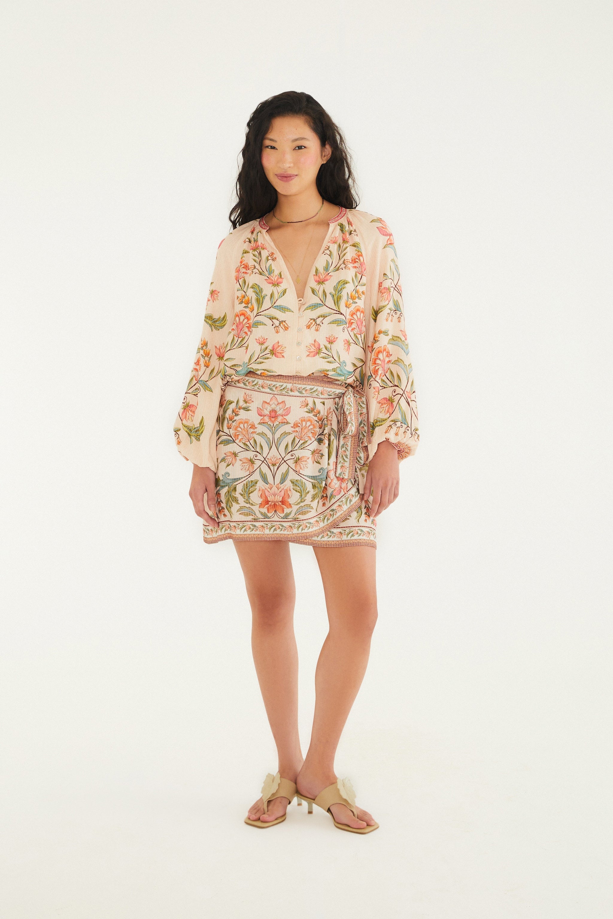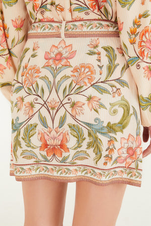La falda estampada Natalia ofrece ligereza y fluidez con un corte acampanado y un tejido suave que se adapta al cuerpo. La cinturilla elástica ajustable proporciona comodidad, mientras que su largo corto realza el estilo casual. Perfecta para tardes soleadas o cenas bajo las estrellas, combinando encanto y versatilidad. FARM RIO Original - Verano 26.