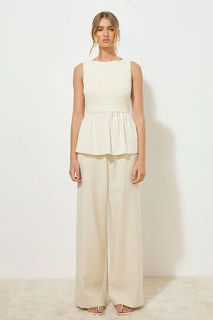 - Mixed fabrication- Sleeveless top- Fit & flare silhouette- Soft jewel neckline- Sleeveless bodice in crinkled stretchy fabrication- Featuring gathered hem peplum in non-stretch woven fabrication- Elasticated waist for adjustability- Pull-on style- Partially lined