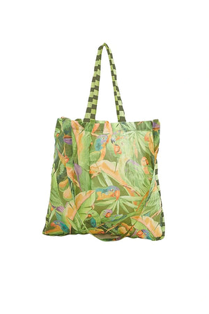 Carry your essentials in style with this charming everyday bag featuring a vibrant forest and bird print inspired by Rio's natural beauty. Perfect for daily adventures, this versatile tote keeps your belongings organized while celebrating the lush landscapes of the Amazon. A practical accessory that brings a touch of nature wherever you go.