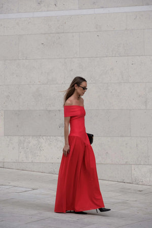 Perfect for galas, formal weddings, or black-tie events, the Jesselle Off The Shoulder Gown in Red is a confident, show-stopping choice for evenings where you want to feel unforgettable.