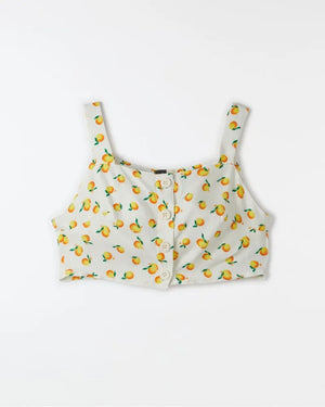Top in Laranjitas print. This garment, part of the FARM Futura line, features straps, a straight neckline, and front button fastening. The lightweight fabric provides comfort and freedom of movement. Pair it with skirts, pants, or shorts to express your style.