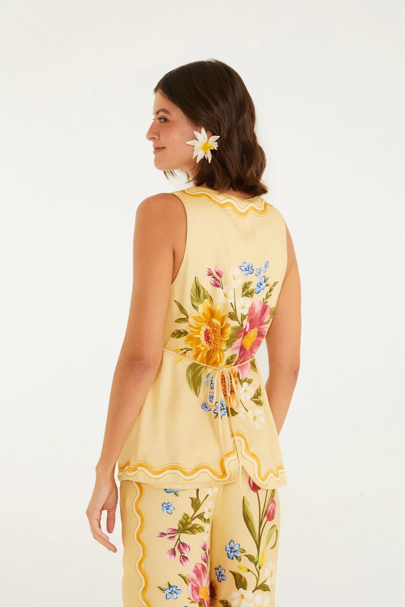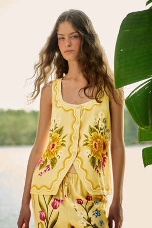 Mari floral print ponytail. It has an artistic touch with its differentiated cut and delicate long hair. The fluid model provides lightness and movement, while the wavy finishes highlight the exclusivity of the piece. Perfect for creating casual and fresh looks on sunny days.