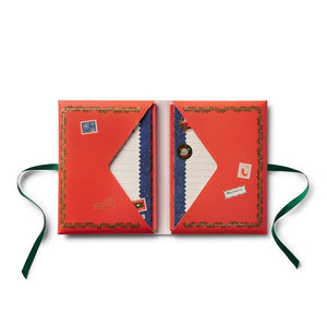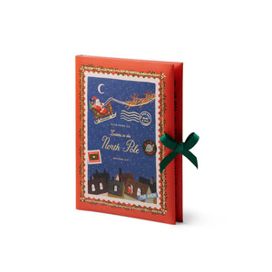 North Pole bound! Pen letters to Santa with this set of 12 illustrated notecards, including matching envelopes tucked inside a folio-style folder that closes with a ribbon.