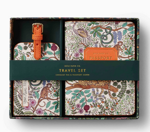 Featuring an illustrated print inspired by old-world travel, this set is the perfect companion for upcoming adventures. The set includes a luggage tag and passport cover, packaged in a gift-ready box.